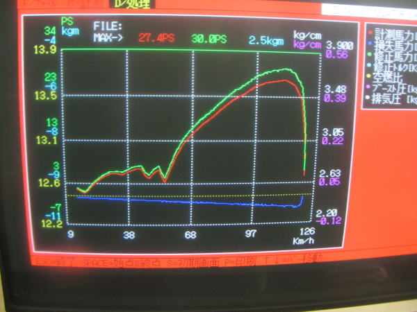なんだかんだと悪あがきをして29.8PSに!!。しかしトルクは相変わらず2.4K。ここまでくるとトルクもですが、馬力もなんとか30馬力を目指したくなります。