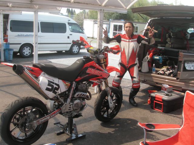 タイムアタックの時、最終コーナーで転倒してしまい、左の肩と腰を負傷。マシンの方もダメージを受けてしまいましたが、なんとか修理出来、ヒートレース、決勝、と走りきる事が出来ました。