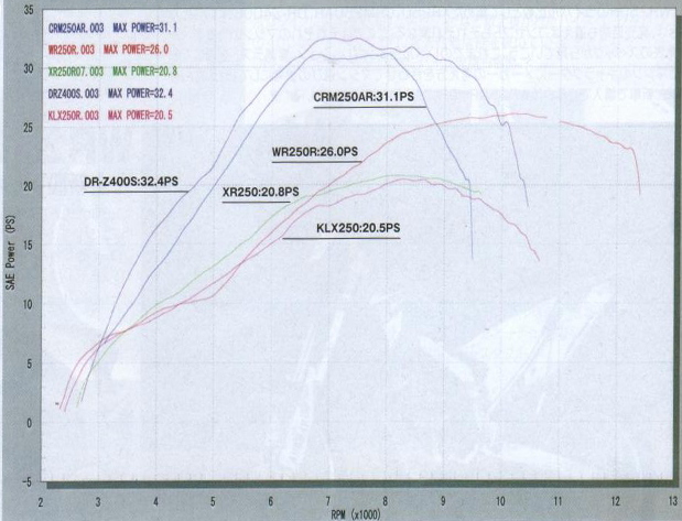 ノーマルWRと私のトラで比べればなんとか私のDトラの方が速いですが、マフラー+キャブ位のDトラだと勝てるか微妙です。WRをきちんとチューン出来る人がいじれば私のDトラでも負けるのは明らか、、、、。